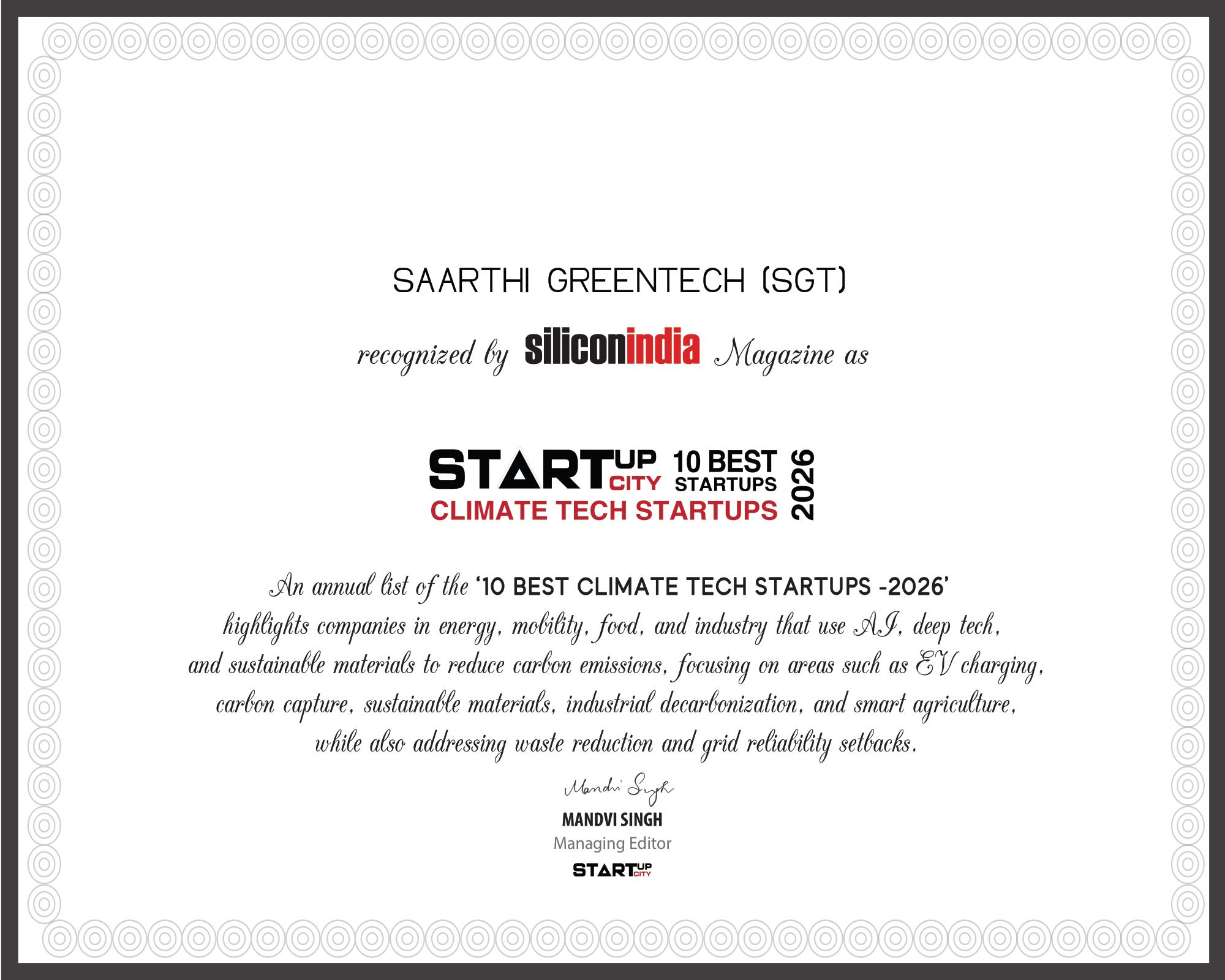 Honored among the 10 Best Climate Tech Startups of 2026 for innovation across energy and industrial sustainability.The award reflects our mission to accelerate the transition to low-carbon, resilient systems.