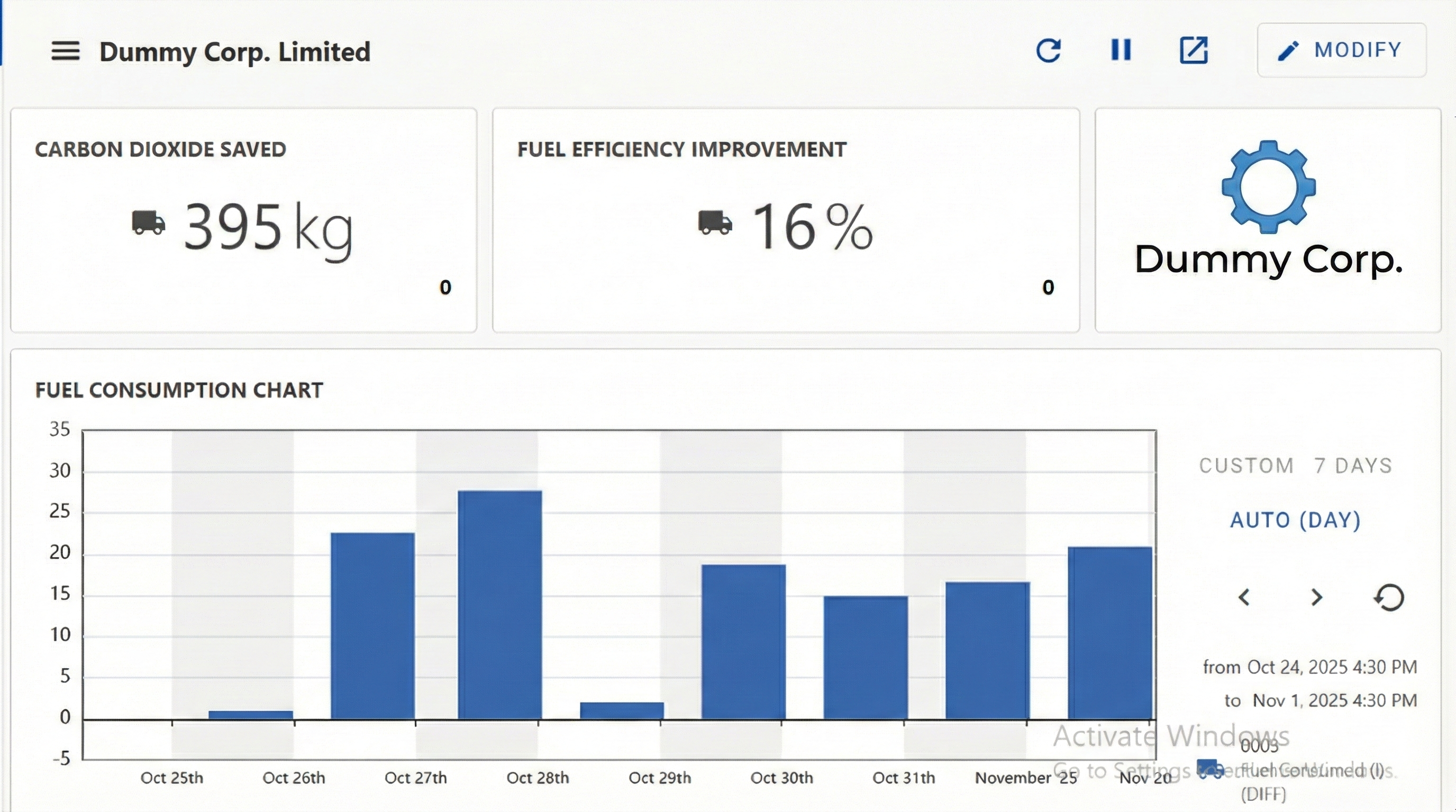 Savings depend on terrain, load, idle ratio and driving patterns. GreenVision provides real-time measurement and verification (M&V) on your specific fleet.